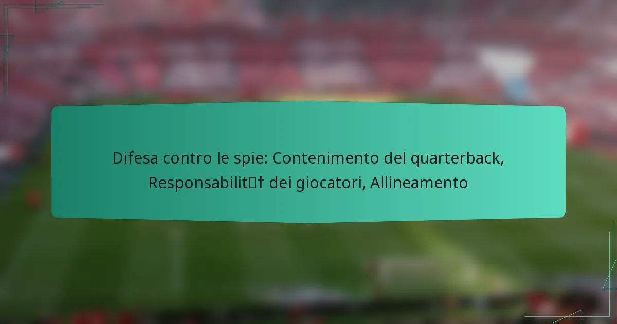 Un allineamento efficace dei giocatori è cruciale per una difesa spia di successo, in particolare per contenere il quarterback. Una corretta posizione consente ai difensori di anticipare le giocate offensive e reagire rapidamente, minimizzando la capacità del quarterback di sfuggire o di effettuare giocate.